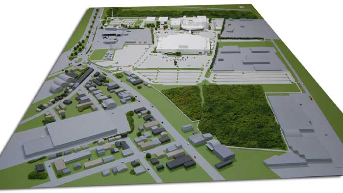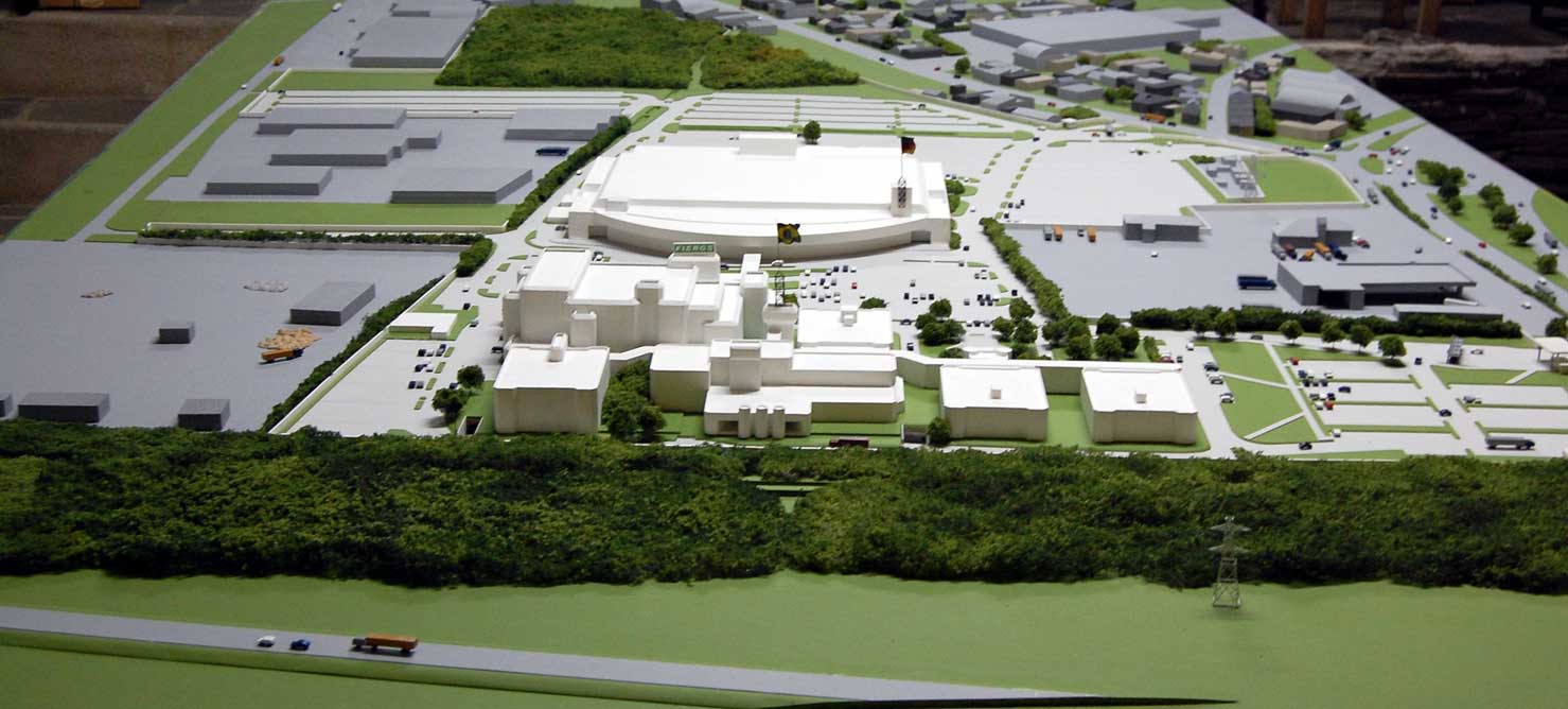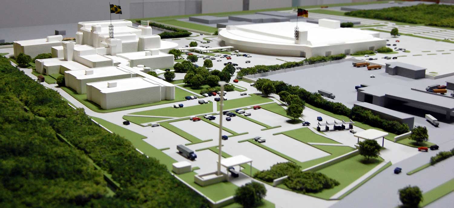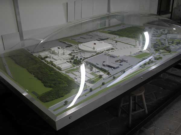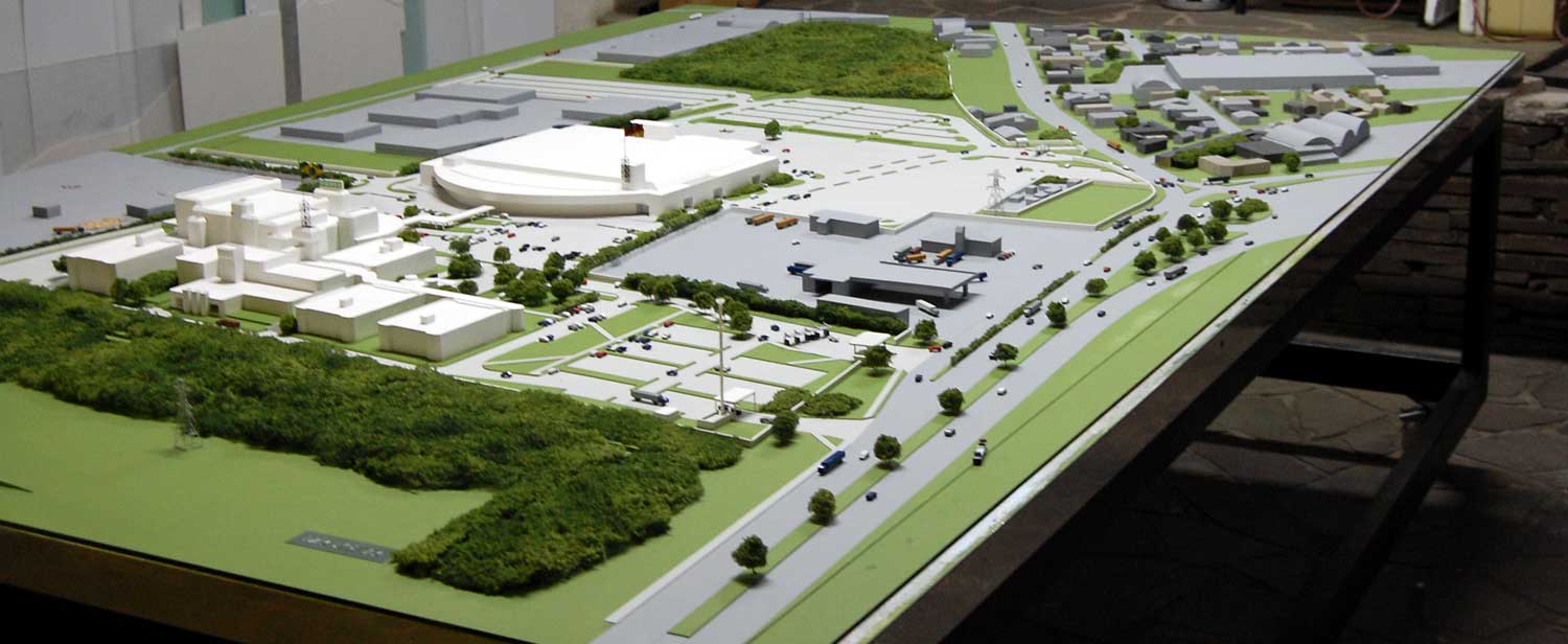 Restauro e atualização de maquete. Dimensões:190x285 cm Materiais empregados:poliestireno,pvc,mdf Base :Mdf, Aluminio e aço. Vegetação:moldada com espuma. gramado:pintura PVA