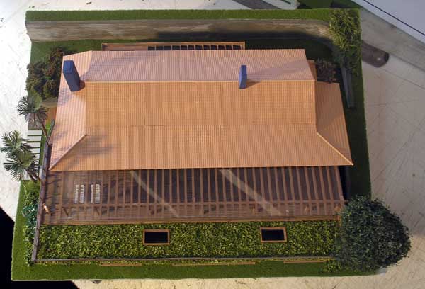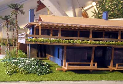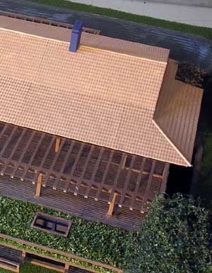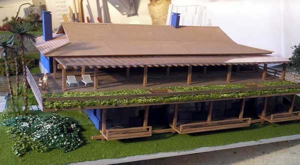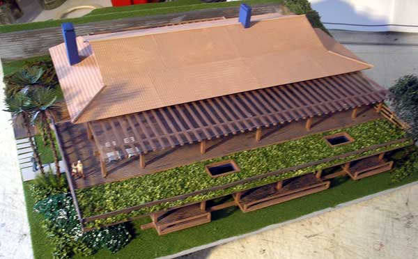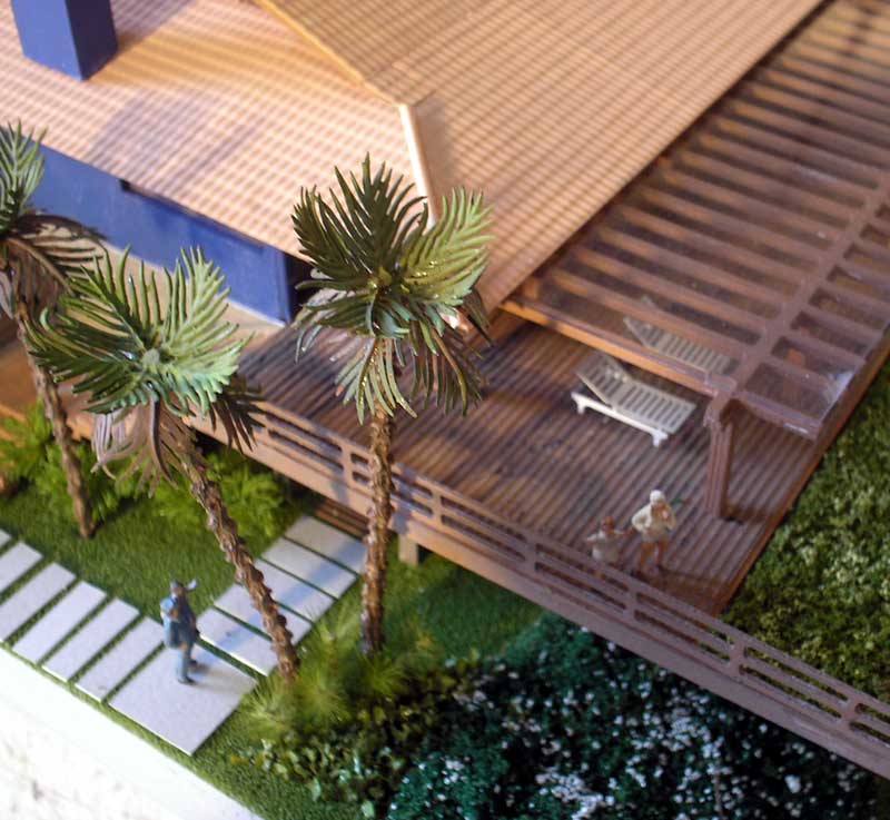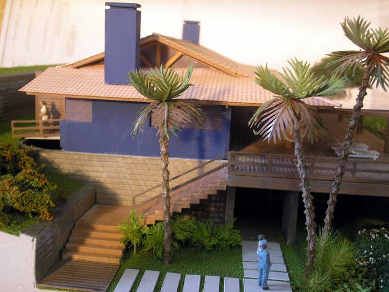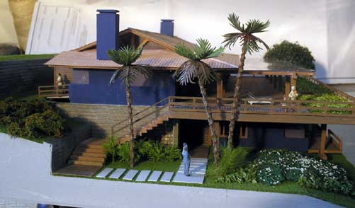 Dimensões:35x60 cm Materiais empregados:poliestireno,pvc expandido,pvc cristal,pvc branco. Base :PVC Vegetação:moldada com espuma e elementos naturais. Pintura:pva,automotiva Gramado:revesfofo (MAKETA) Figuras: Preiser Recorte: router (MAKETA) Colas: cianoacrilato,cascola,77. Telhas: TR-87 Pedras: TP-87 Deck: TP-90