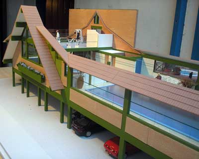 Area de lazer do hotel,piscinas,iluminação das piscinas. Dimensões:120x70 Tampo:Artplast Materiais empregados:PVC expandido,poliestireno,acrílico. Base :Compensado 18 Telhado:telhas poliestireno moldado TF-32 Agua: PN-100 e PN-50 (PVC moldado) Pastilhas piscina:PQ-50 Tijolos:TM-50 Deck: LM-35 Vegetação:moldada com espuma e elementos naturais.