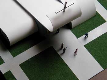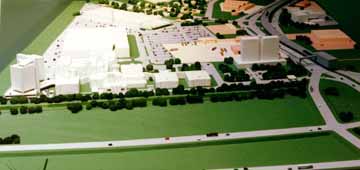 Maquete volumétrica escala 1:330 Complexo: Área administrativa,Teatro Sesi,Pavilhão de Exposições, Entorno edificado,Trensurb Assis Brasil