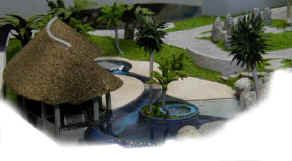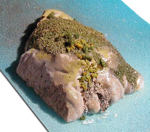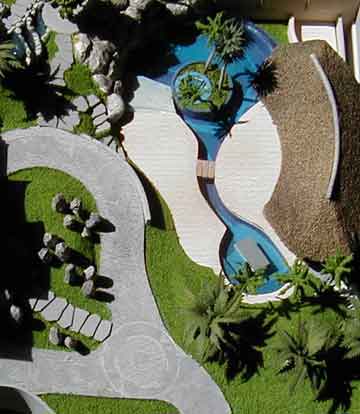 Maquete paisagismo Escala 1:100 Arvores de espuma pintada Palmeiras polietileno injetado Pedras de poliuretano Agua acrilico e resina Pintura Pva