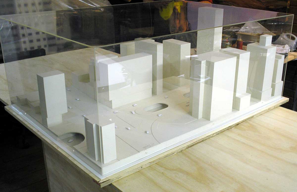 blocos volumetricos na avenida Paulista Dimensões:90x120 cm Materiais empregados:pvc expandido,acrílico,mdf. Base