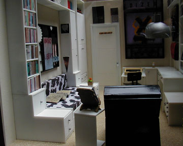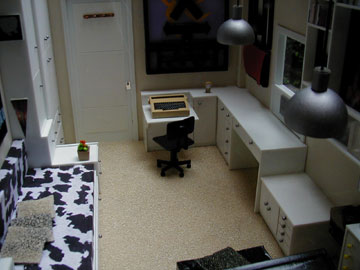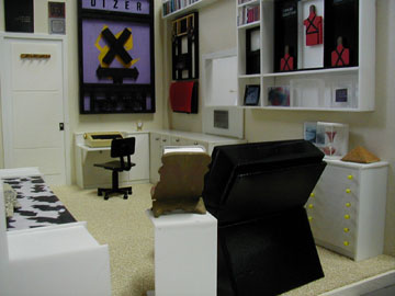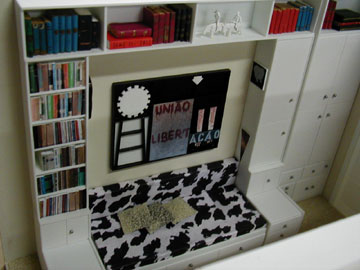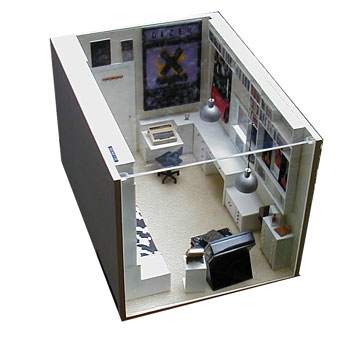 Reprodução em escala da sala de trabalho do escritor e artista plástico,móveis,obras de arte presentes no espaço,livros,objetos pessoais. Materiais empregados: MDF,acrílico,poliestireno,,espuma Tinta:PVA Cola:cianoacrilato,B-25. Prazo:30 dias Cliente:Fundação Pedro Escosteguy
