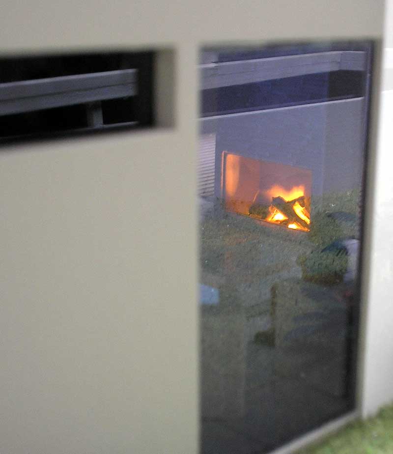 Led alaranjado simulando fogo. Moveis MAKETA.